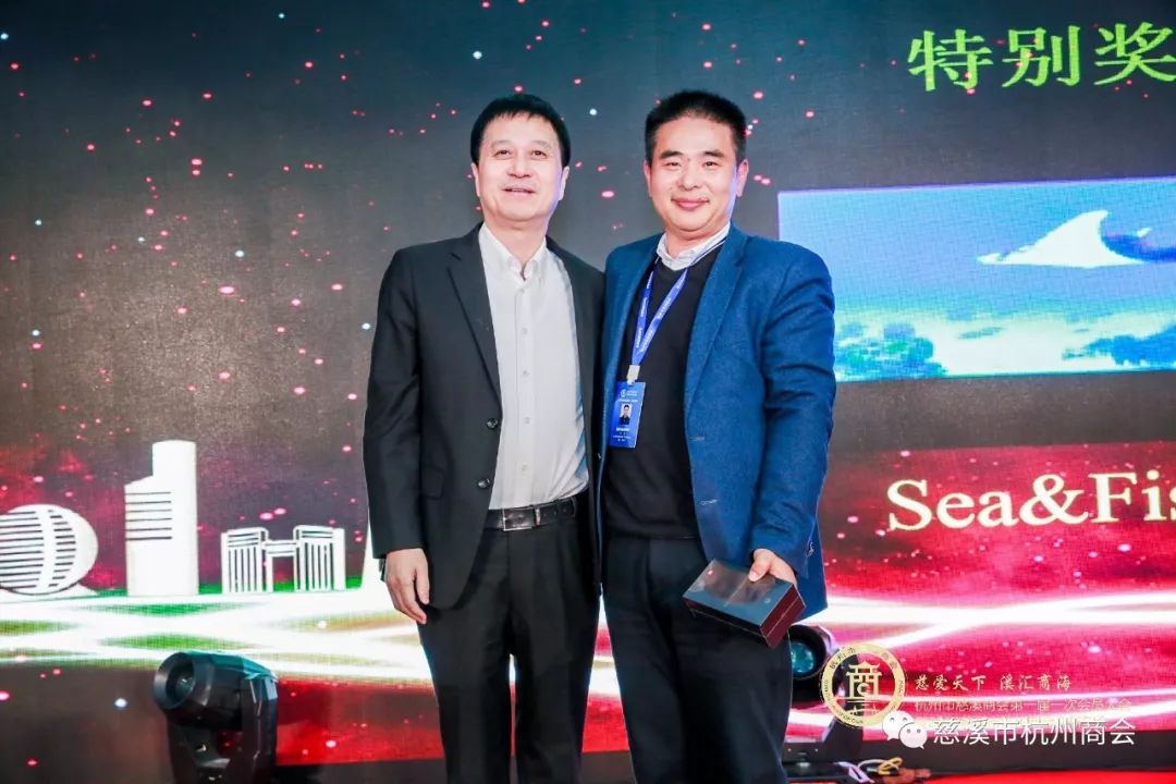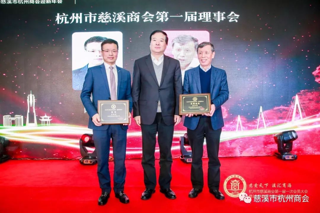 慈溪市委书记高庆丰为陈越孟会长、徐新桥名誉会长授牌